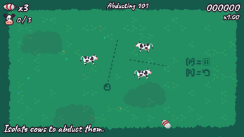 Play an alien from outer space that came to Earth to try to get as many cows as possible to satiate their need for dairy. Your only problem is that your spacecraft can only abduct a cow if it's isolated from all other animals. Luckily, you have your handy digging laser that you can use to separate your targets from any other creatures!